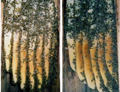 Весной после зимовки средняя полезная площадь естественных сотов была равна S = 1687 см2, расстояние между средостениями сотов 37,0±0,5 мм, ширина улочки в медовой части гнезда 7–9 мм, расплодной 10–12 мм. Длина центральных пластов сотов 450–480 мм, ширина 435 мм. Средняя масса семей 1,8 кг, запас меда 14,7 кг, обеспеченность медом не ниже 1,7 кг на улочку, запас перги 1,4±0,15 кг. Следы поноса на сотах отсутствовали. На небольших участках находился молодой расплод и яйца. Число клещей варроа в зимнем подморе было небольшим, хотя поражение пчел, остававшихся после облета на снегу, было высоким (38 паразитов на 100 особей). Лечебная обработка пересаженных на сотовые рамки семей показала низкую заклещенность — около 1,5%.